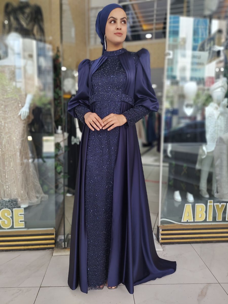 Pelerinli Otriş Detaylı Tesettür Abiye